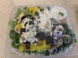 Lettuce, tomato, onions, mushrooms, black olives, pepperoni, and Parmesan.